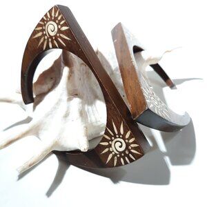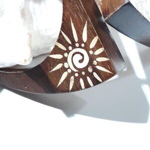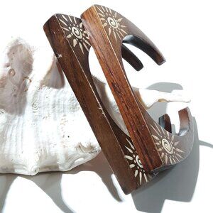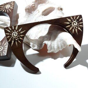 Wood Bracelet Pair Handpainted Flat Top Cuff Mandala Burst Sun Vintage Boho Hipp