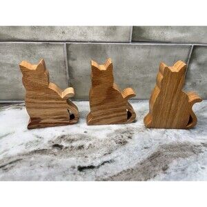 Wood Cat Cutouts Set Of 3 Montessori Toy Feline Kitty Orange Cat Statue Trinkets