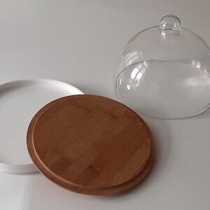 Wood & Ceramic CHEESE BOARD with Glass Dome Cover