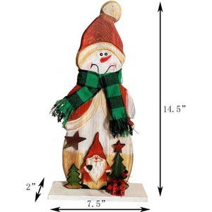 -- This Christmas snowman tabletop figurine is made of solid wood with a vintage look; Measures 14.25''x7.5''; is Beautifully designed and of high quality. Beautifully detailed addition to your holiday XMAS décor.