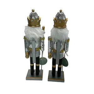 Wood Christmas15" Nutcracker Soldier Silver Sequins Uniform Gold Jewel Crown Set
