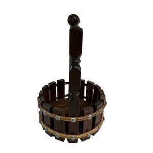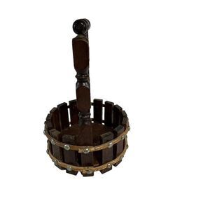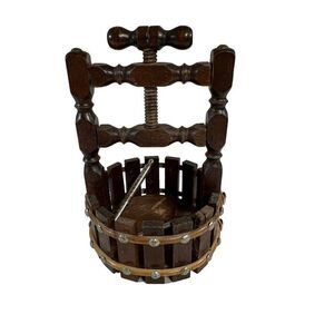 This vintage wooden hand screw nut cracker is a timeless addition to any kitchen. Crafted from quality wood and metal, it is durable and built to last. Its classic design, with a wishing well motif, creates a charming aesthetic that is sure to impress guests. Measuring 9.25 inches in length, this nut cracker is perfect for cracking a variety of nuts, making it a versatile tool for any home chef. Whether you are a seasoned nut lover or simply looking to add a touch of vintage charm to your kitchen, this nut cracker is a great choice.