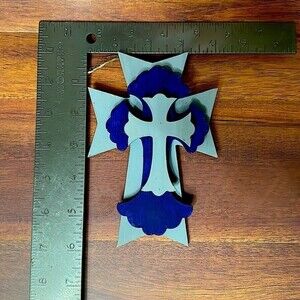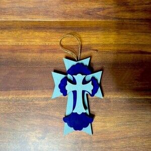 Adorable Wood Cross with pretty Blue and Grey colors! Make a great gift for the Law Enforcement person in your life. Great gift to put in a Easter Basket! Has handing string attached as shown in pictures.