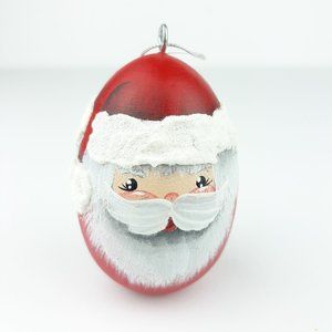 Wood Egg Painted Santa Christmas Ornament Red White