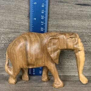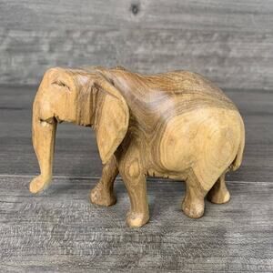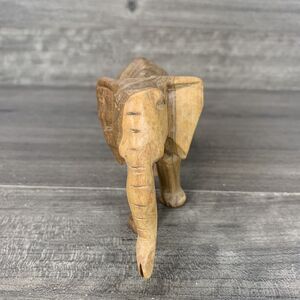 Description: Wood Elephant Sculpture Hand Carved Light Colored Wooden Figurine 3” Tall Decor