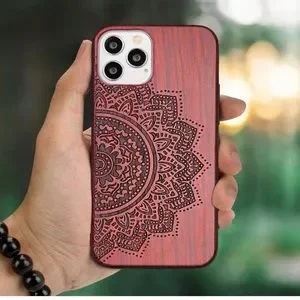 Wood Engraved Case Slim Protective Cover Bumper Case for Apple iPhone 12/12 Pro