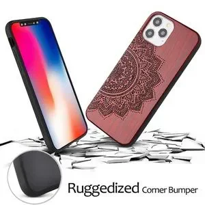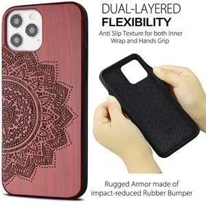 Practical ---Thin yet durable, this stylish and luxurious cover Compatible for iPhone 12 / 12 Pro wood case offers an enhanced grip and textured geometric mandala design that adds even more protection to this Phone.