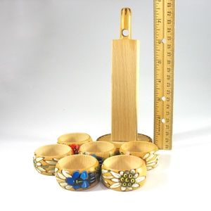 Wood Floral Napkin Rings, Set Six Stacking, Stand