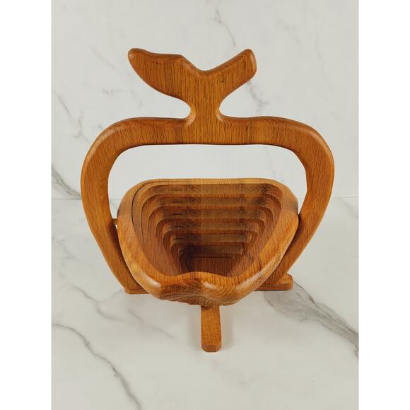 Wood Folding Fruit Basket Apple Shaped 11" John's Wood Shop Handcrafted USA