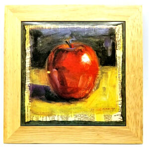 Wood Framed Ceramic Apple Tile Trivet or Wall Hanging 8x8" NEW in Box