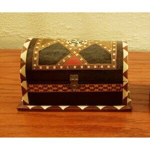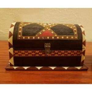 Wood Inlay Trinket Box Small Jewelry Box Lined Hand Crafted Vintage 3 X 5 In