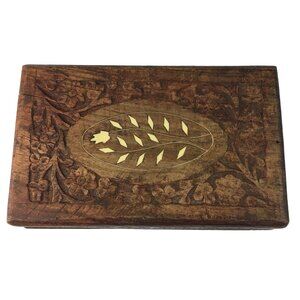 Wood Jewelry Chest Storage Box Inlay Carved Floral Pattern Solid Mid Century u