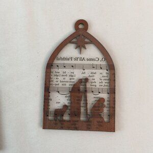 Wood Laser Cut Nativity Christmas Ornament w/Carol Music 4" Set of 6 Lot #4