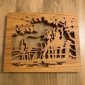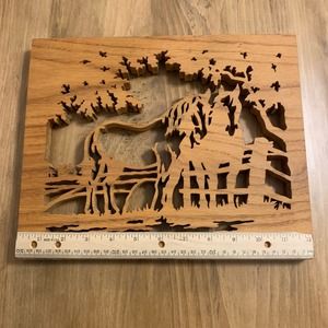 Wood Laser Engraved Oak Horse Pasture Western Wall Decor Plaque Alligator Hanger