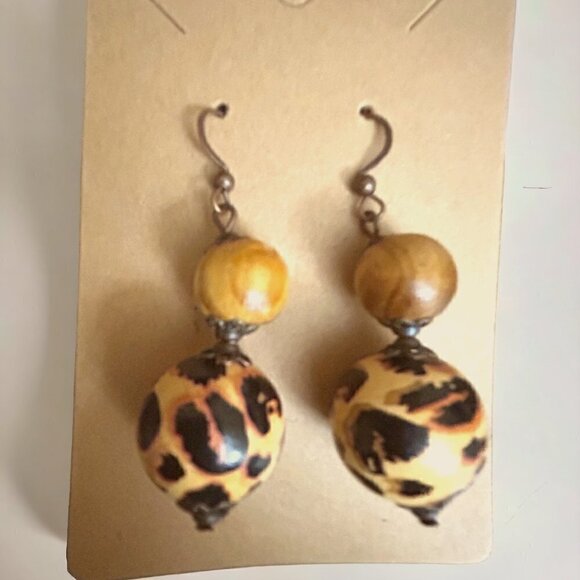 See photos for measurements. These are big and bold! Fun leopard print. Material: wood.