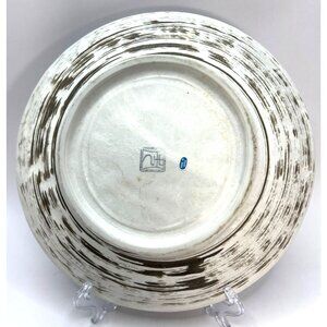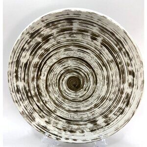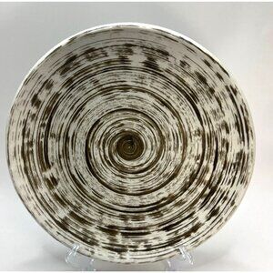 This brown and white round plate, made of high-quality pottery, features a unique wood grain look. Its durable construction ensures no chips or breakage.