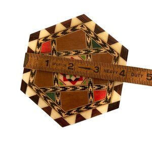 Wood Marquetry Inlay Mosaic Type Coaster Set Moroccan Style Hexagon Set of 6