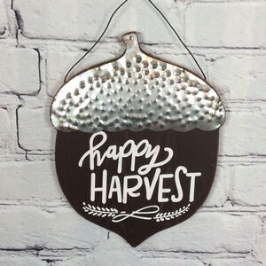 Wood & Metal Acorn Happy Harvest Fall Sign Door Wreath Decor 9" X 7" New