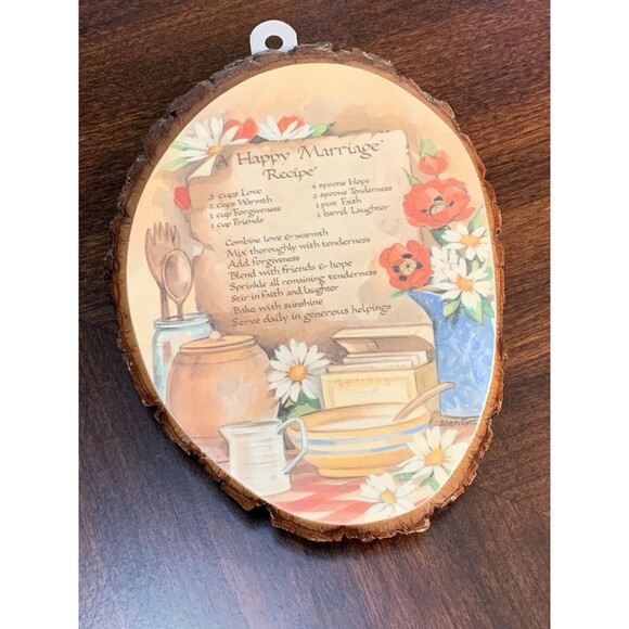 Multnomah Falls Oregon Decoupage. Wood plaque featuring "A Happy Marriage Recipe". Provides a metaphorical "recipe" for a successful marriage using ingredients like love, faith, forgiveness and laughter. Collectible Souvenir. Gently used. Minor scratches. See all pictures.