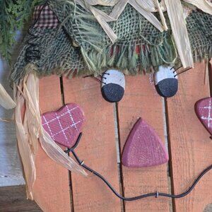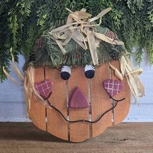 Wood Pumpkin Scarecrow Head Wall Hanging Primitive Fall Harvest Halloween Decor