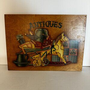 Wood Rectangular "Antiques" Sign Wall Plaque Home & Business Decor Country Style