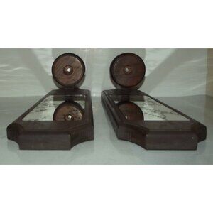 Wood Sconce (lot of 2) mirror crackled gold MCM candle votive holder 15" vintage