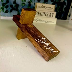 Wood Scripted Cross for home Decor, NEW, scripted with the word Blessed 7in length