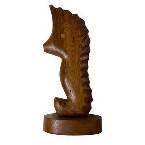 This Mid Century Modern Wood Seahorse Toothpick Holder is an elegant addition to any coastal decor. Crafted from brown wood, its figurine statue style is truly captivating.