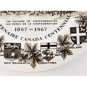 Wood & Sons Flow Brown Fathers of Confederation Canada Centennial Display Plate Fathers of Confederation New Brunswick Manitoba Quebec Nova Scotia Canada Saskatchewan