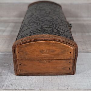 Wood Trinket Box Painted Textured Fabric Top Hinged Lid Hand Made Boho Decor