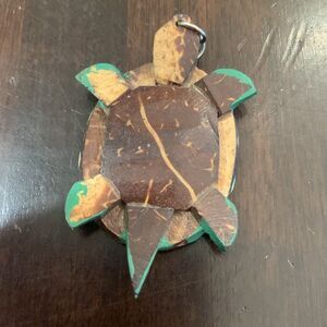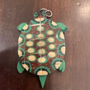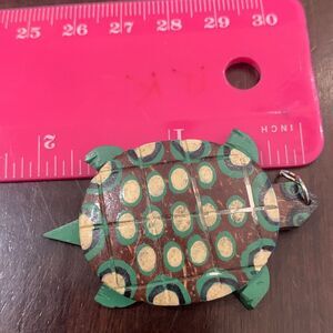 Wood Turtle Pendant in green brown and yellow