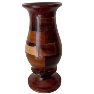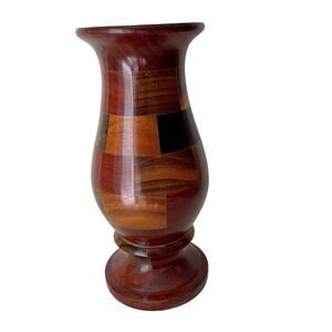 Wood Vase 8.5" Tall Hand Turned Solid Wood Inlay Cabincore Boho Natural