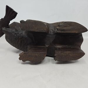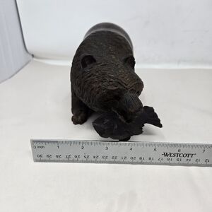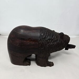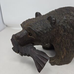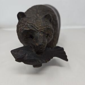 Wood Wilderness Carved Bear Catching A Fish In Mouth Rich Brown Color Heavy