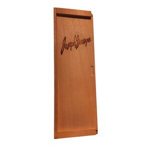 Elegant wood wine bottle box with slide-open design, perfect for gifting or storage. Features a classic look with "Joseph George" branding. Ideal for wine enthusiasts and collectors.
