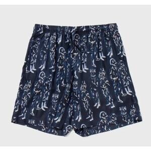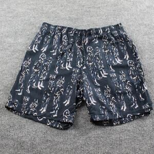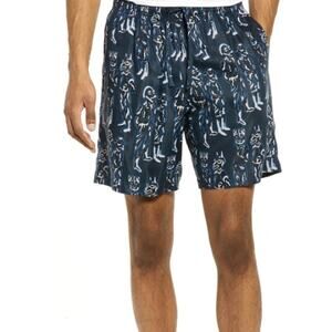 Wood Wood Shorts Mens L Elton JC Drapey Twill Navy Blue Abstract Artzy Jerkcurb