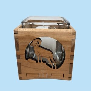 Wood You Tell Me Inc Cherry Wood Ram On Hill Cut Out Glass Insert Candle Holder