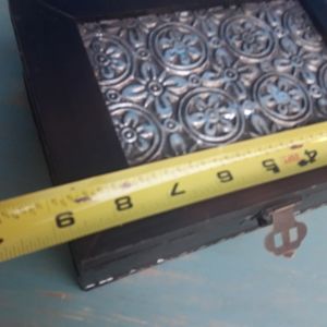 Wood and Metal Box with Hinged Lid Jewelry Wooden Trinket Box Gift for Her Him