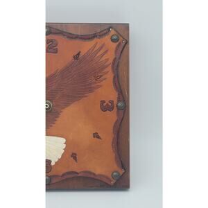 Wood and Tooled Leather Wall Clock Eagle Bird Vintage Retro Man Cave Biker brown