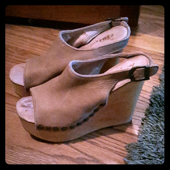 Cute Ziggy Girl wooden wedges with leather. Embellished around the sole! Bought at bakers