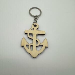 Wood keychain/Wood engraved Tarpon Springs Florida anchor nautical keychain NWOT