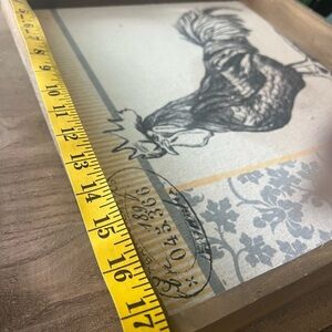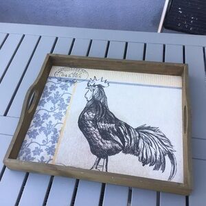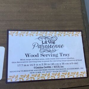 This beautiful farm style wooden serving tray is in good film, Lab conditions, small staying strong in pictures no tears no damage proximity measurements and pictures