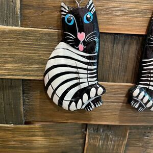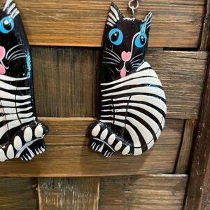 Wood Cat Black and White Heart Nose 1980’s Earrings