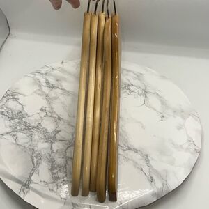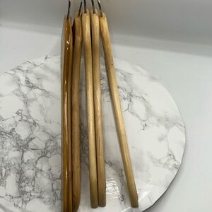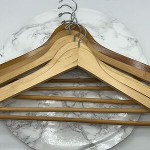Set of 5 wooden hangers with silver metal hooks, great condition.