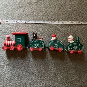New! Wood toy train. Still in box. Colorful Christmas train with little figures. Approximately 9" long. Would make a great Christmas decoration gift. Bundle to get 30% off.