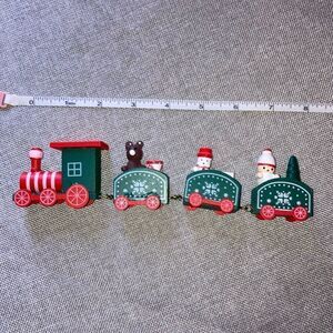 New! Wood toy train. Still in box. Colorful Christmas train with little figures. Approximately 9" long. Would make a great Christmas decoration gift. Bundle to get 30% off.