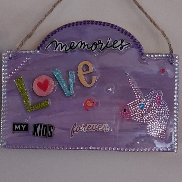 Purple painted wall decor, resined