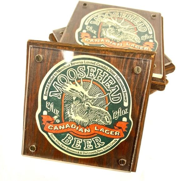 Wood drink coasters Moosehead Canadian lager beer set of 5