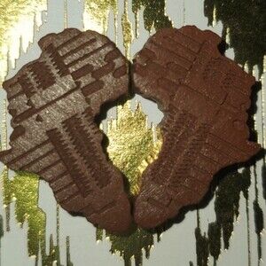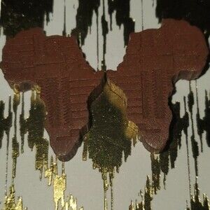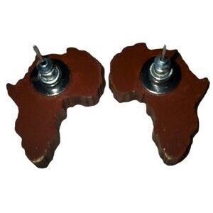 Stud earrings featuring laser-cut wooden continent of Africa with textured map. Mirrored on opposite earring.