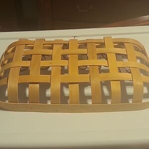 Charming wooden basket featuring a 'Gather' sign. Perfect for home decor. The basket is approximately 15 inches long and 9.5 inches wide.