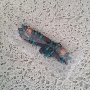 Grab this fashion brown, turquoise stacked wooden bead slide bracelet now.